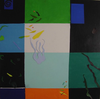 Aquarium Acrylic and Collage on Board, 24"x 24", 2006